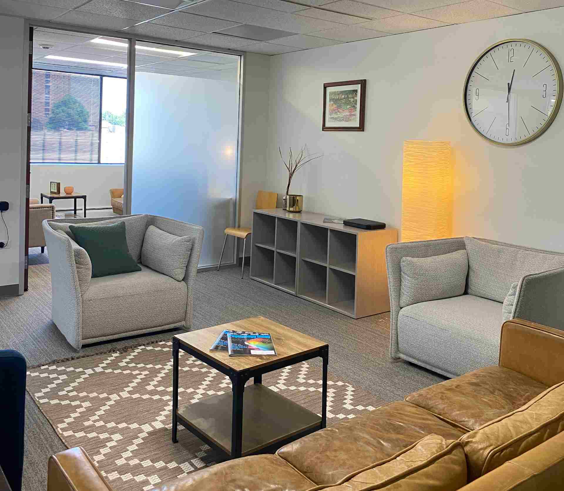 We offer in-person therapy at our offices in Lakewood. We’ve worked hard to create a warm, welcoming space where we think you’ll feel right at home.